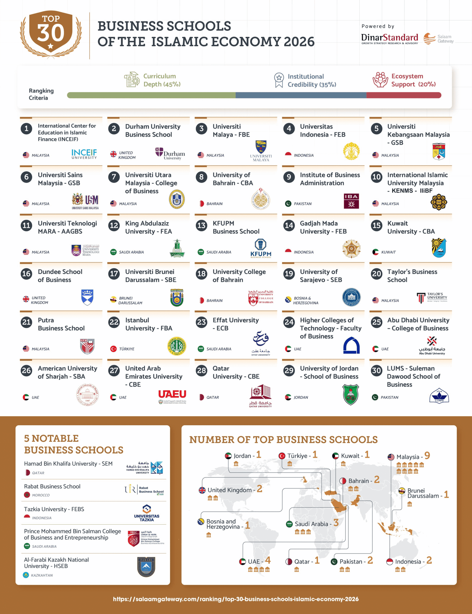 Dinar Standard & Salaam Gateway Rilis Daftar 30 Sekolah Bisnis Terbaik untuk Ekonomi Syariah Global